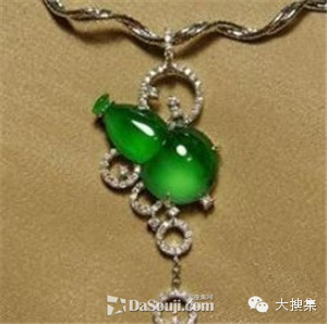 翡翠上帶有葫蘆的圖案,寓意福祿相伴。