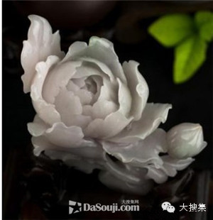 翡翠上帶有牡丹的圖案,寓意富貴。