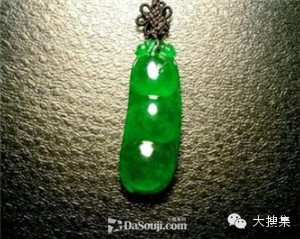 翡翠上帶有菱角的圖案,寓意伶俐,
